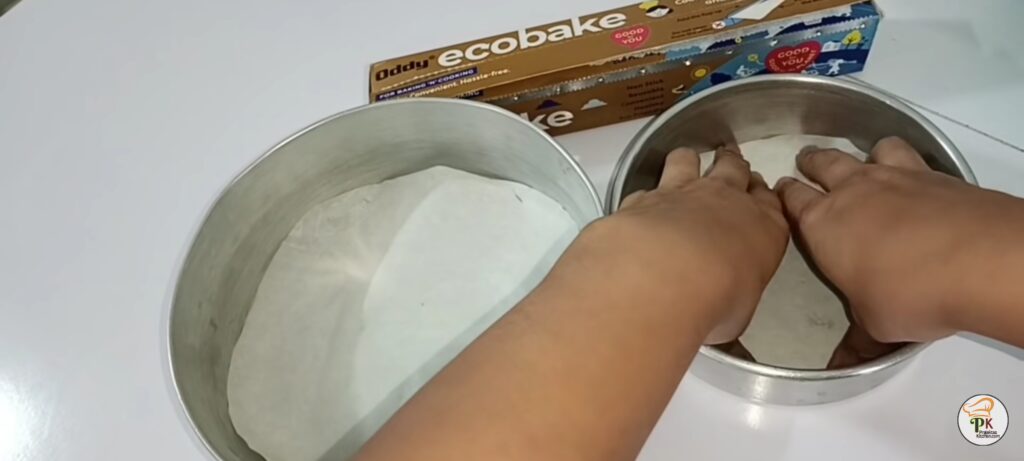 • In a bowl mix premix, water and oil and from a smooth cake batter without any lumps. Use Oddy Ecobake to line the 8 inch and 6 inch baking tin. Oddy Ecobake helps in easy demolding of the cake. Bake the cakes at 180 degrees for 35-40 mins. Let it cool down completely before demolding.