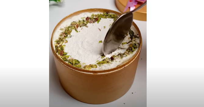 • White chocolate - 1/4 cup, Powdered sugar - 1 tbsp & Grated pista