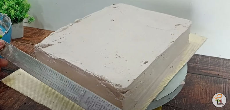 - Repeat the steps till all three layer are complete. With a fine layer of the cream, complete the crumb coating. Remove excess cream and give the cake a sharp cutting edge with a ruler or scale.