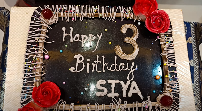 - Write the name of the birthday person in the centre with the cream. Next prepare roses with same cream and place it on the top and bottom corner of the cake.