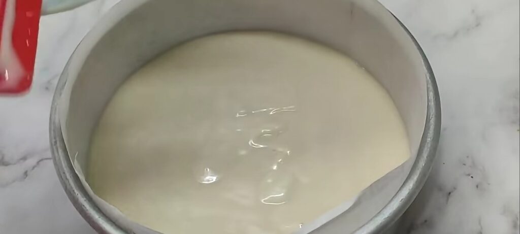 - Line the baking tin with Oddy Ecobake. Skip greasing as Oddy Ecobake is grease-proof. Pour the cake batter into mold. Tap and spread uniformly. Cover lid and preheat the pan for 5 mins. Remove lid after 5 mins. Keep the baking tin, cover and bake at low flame for 35 mins. Cool completely after baking.