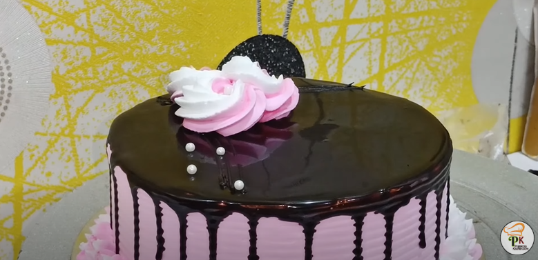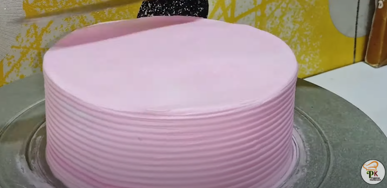 - For frosting add a drop pink gel color and then do the frosting with pink whipped cream. Smoothen the sides and top of the cake.