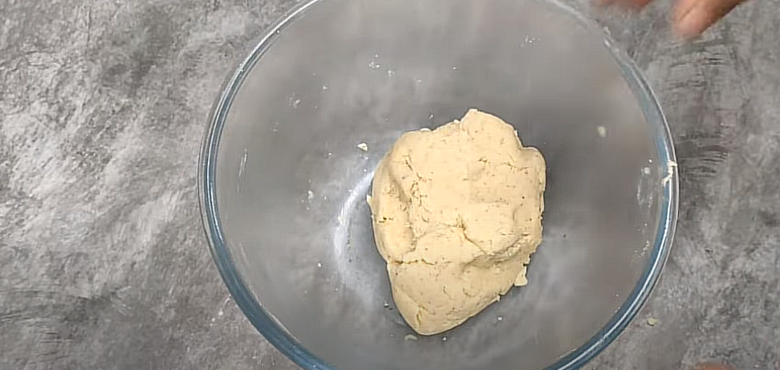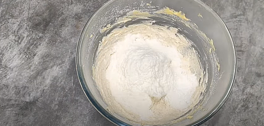 • Add it to the mixing bowl with the butter and whisk until it gets fluffy and light in texture. Now add flour and salt to it and mix gently with your hands to make a dough.
