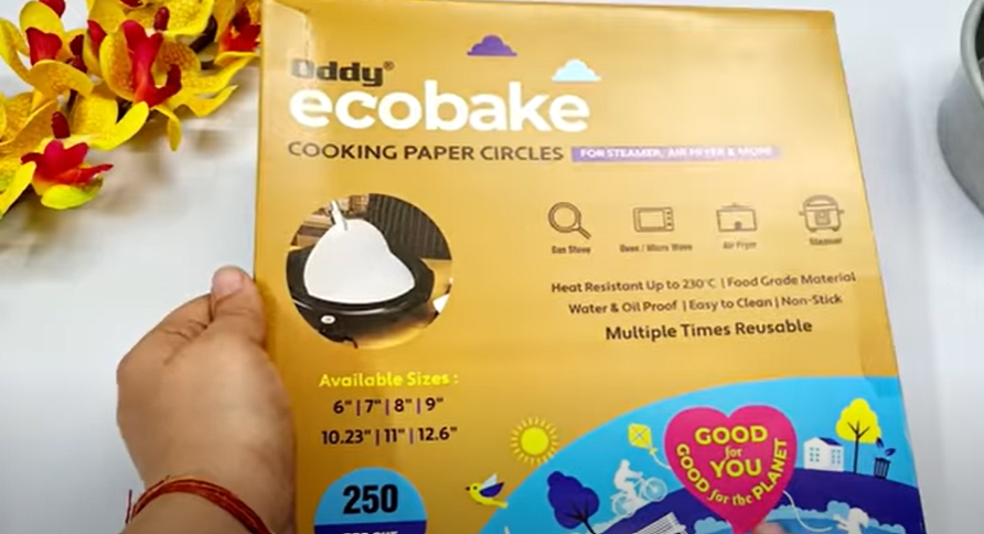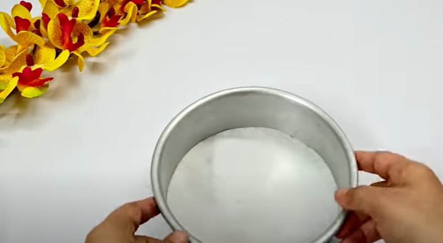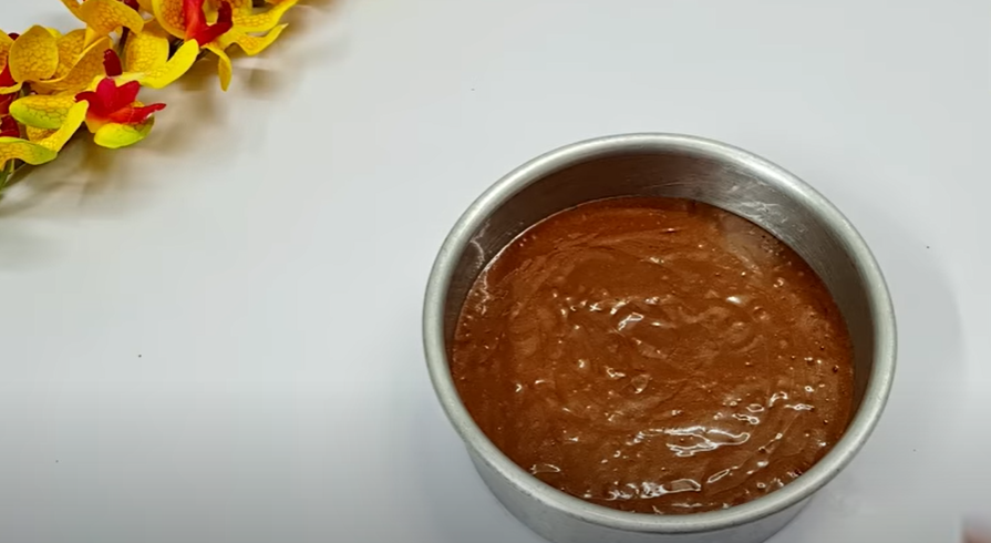 - To make the cake batter, in a mixing bowl, add all the wet ingredients and mix well. Place a strainer over the bowl and strain the dry ingredients. Mix the dry and wet ingredients. Add 2-3 tbsp of milk to adjust the consistency. Take a 6 inch cake tin and line it with Ecobake cooking paper circle, then transfer the cake batter into it.