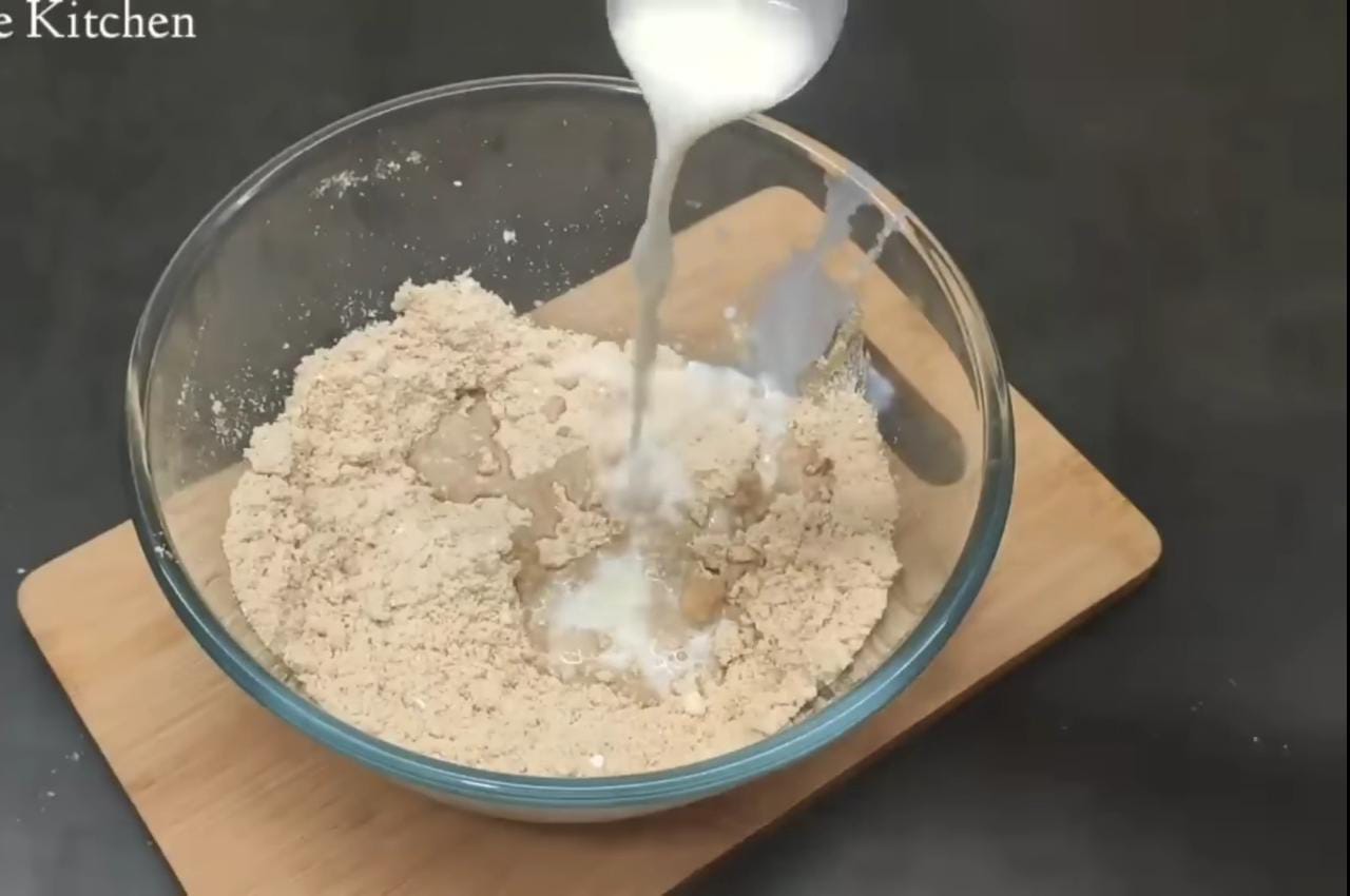 - In a Bowl, add the powder along with 3 tbsp milk powder and 2 tbsp sugar powder and whisk and mix. Gradually add 7-8 tbsp milk and mix and knead well to make a soft dough.