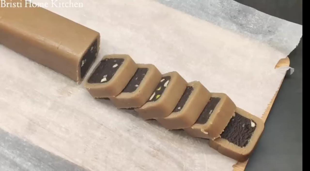 - Cover it with Oddy ecobake and refrigerate for 5 minutes and unwrap it. Cut into squares and enjoy the chocolate square rolls.