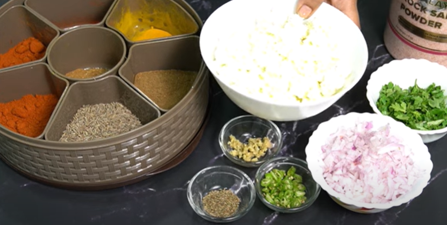 • 1/2 tsp cumin, salt, 2 tspcornflour & 6 tsp gram flour