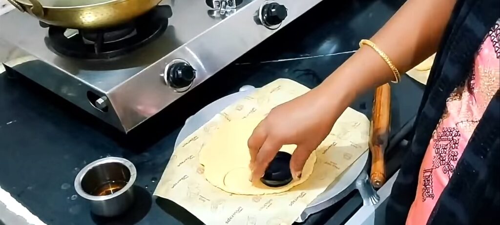 • Refrigerate for half an hour. Remove the dough and we have to make smiley shapes. Take your rolling pan and place Oddy Uniwraps on top of it. Oddy Uniwraps will prevent the dough from sticking. Roll the dough into the shape of a thick chapati.