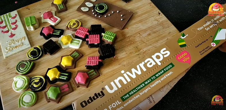 Diwali Special Colourful Chocolates is a wonderful gifting idea for homemaker chocolates. It is super easy and required very less ingredients. For gifting and storing chocolates, use Oddy Uniwraps. It helps keep food fresh for longer hours, prevents moisture, and is a healthy option for aluminum foil.