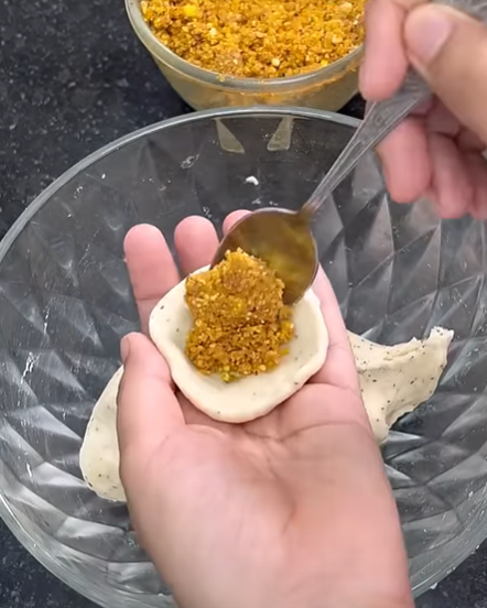 • Prepare the dough by mixing maida, ajwain, salt, oil, and water. Prepare the masalas by roasting coriander seeds, fennel seeds, sesame seeds, elaichi, cloves, and black pepper.