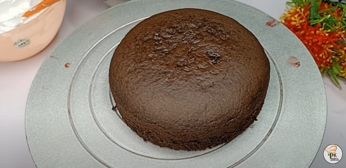 - Remove top and sides brown cooked layer and slice the cake into equal parts. Now prepare a cake filing of a 2 tbsp of whipped cream and chocolate ganache.