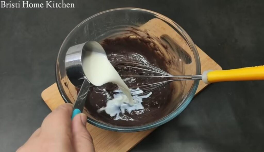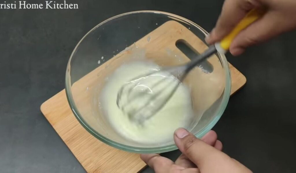 • Gradually add milk to the batter. Whisk till it becomes smooth and shiny.
