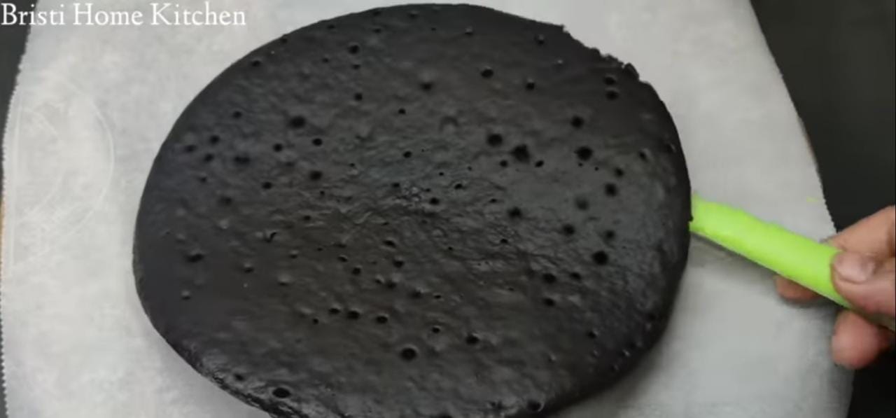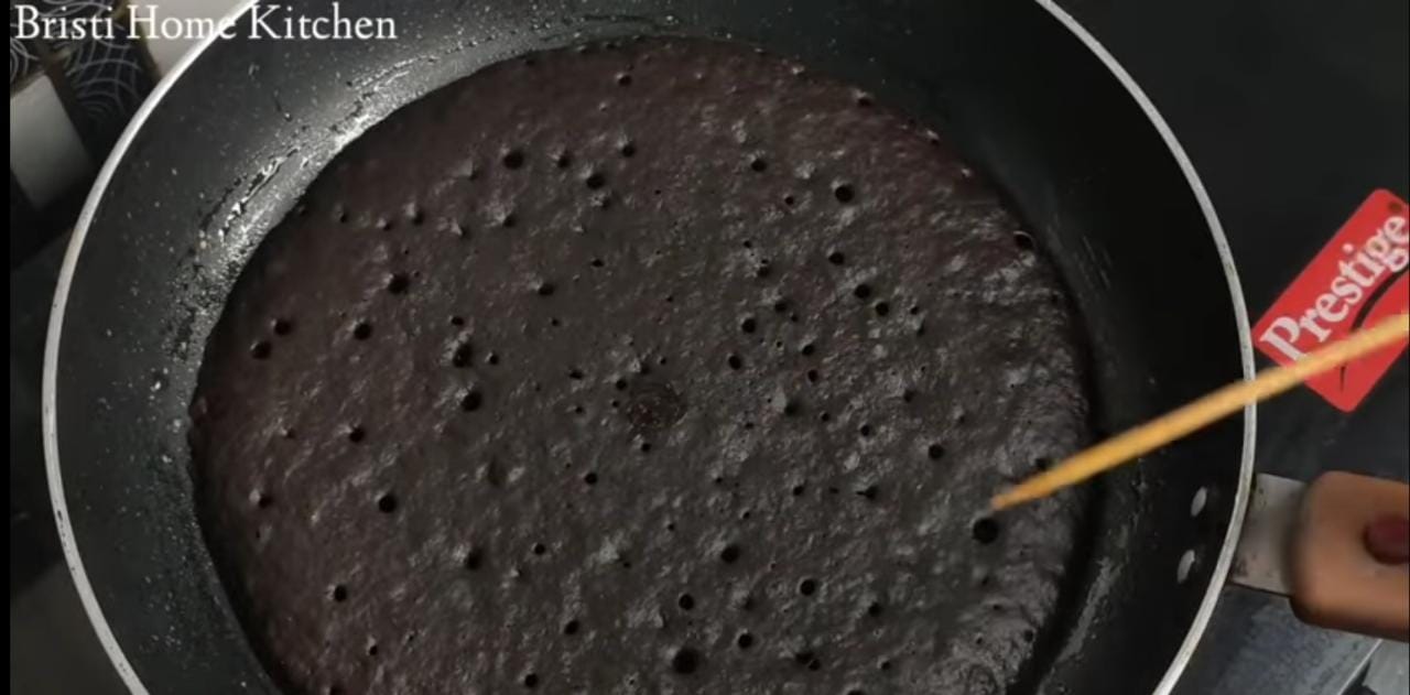 • Brush oil on pan. Pour half of the batter in a pan. Spread uniformly. Cover and bake at low flame for 10 minute. Use a toothpick to test if the sponge is fully baked. When it is cooked, take it out of the pan and place it on Oddy Ecobake.
