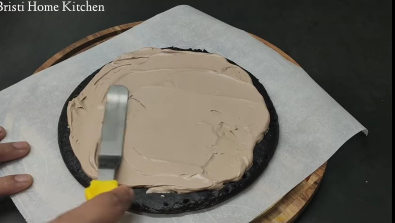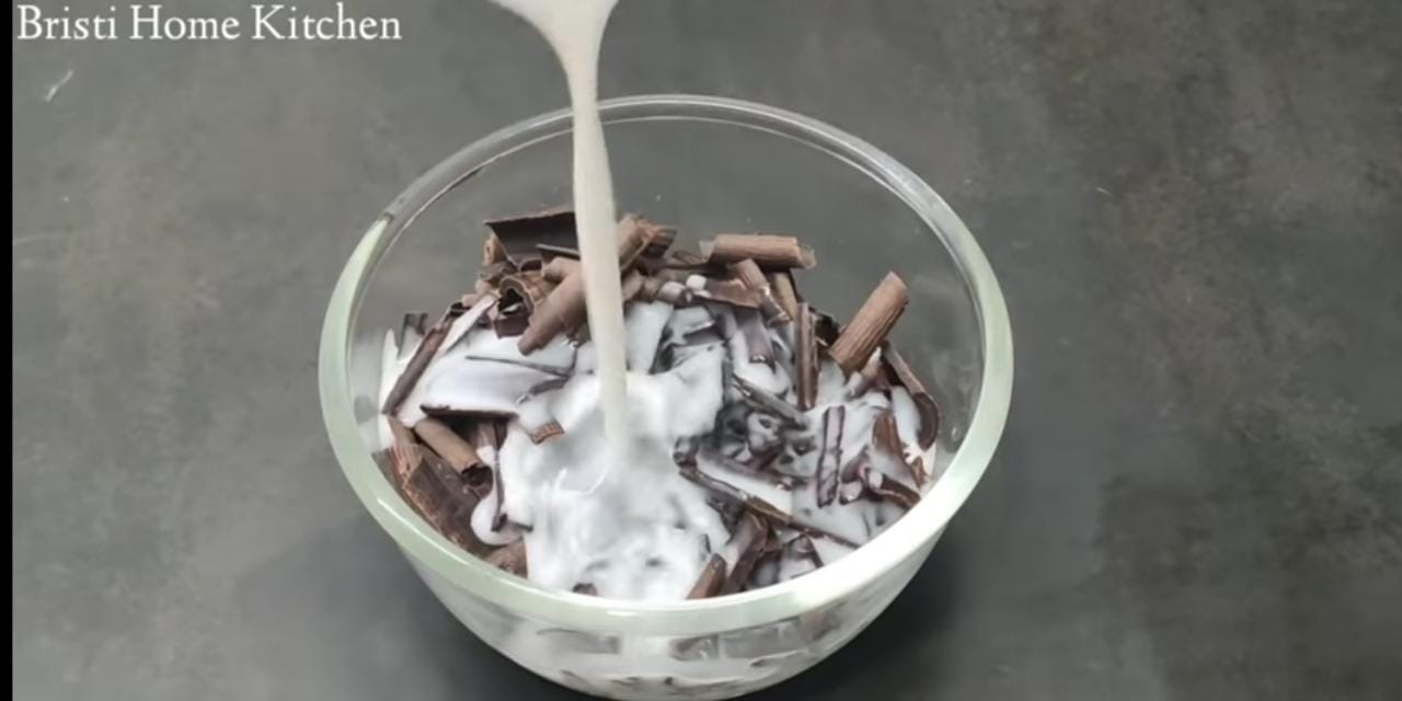 • In a separate bowl, take dark chocolate and add hot whipped cream to it. Mix them smooth to get chocolate ganache.