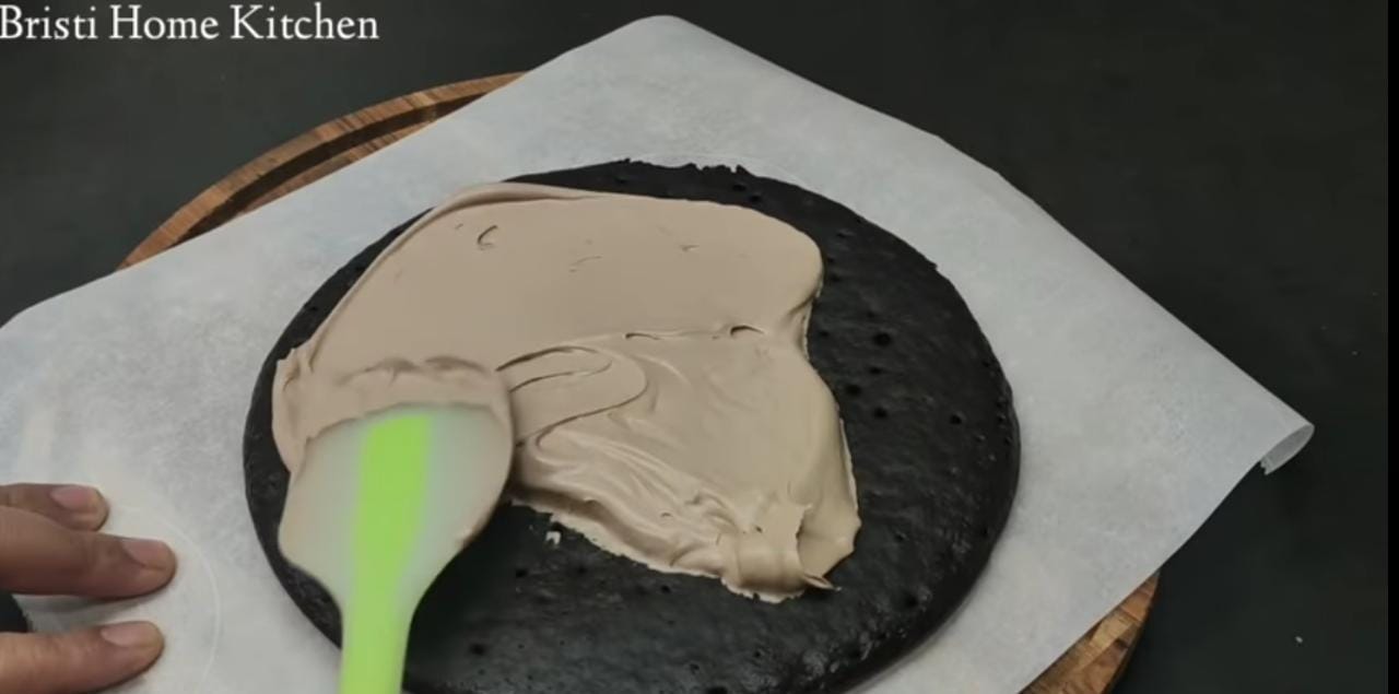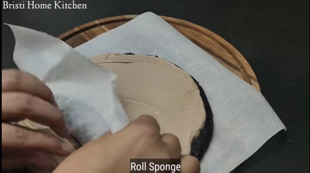• Apply this chocolate frosting on the prepared sponge and spread evenly using a spatula or a butter knife.Now, using Oddy Ecobake, roll the sponge carefully into a cylindrical shaped roll with chocolate filling inside it.