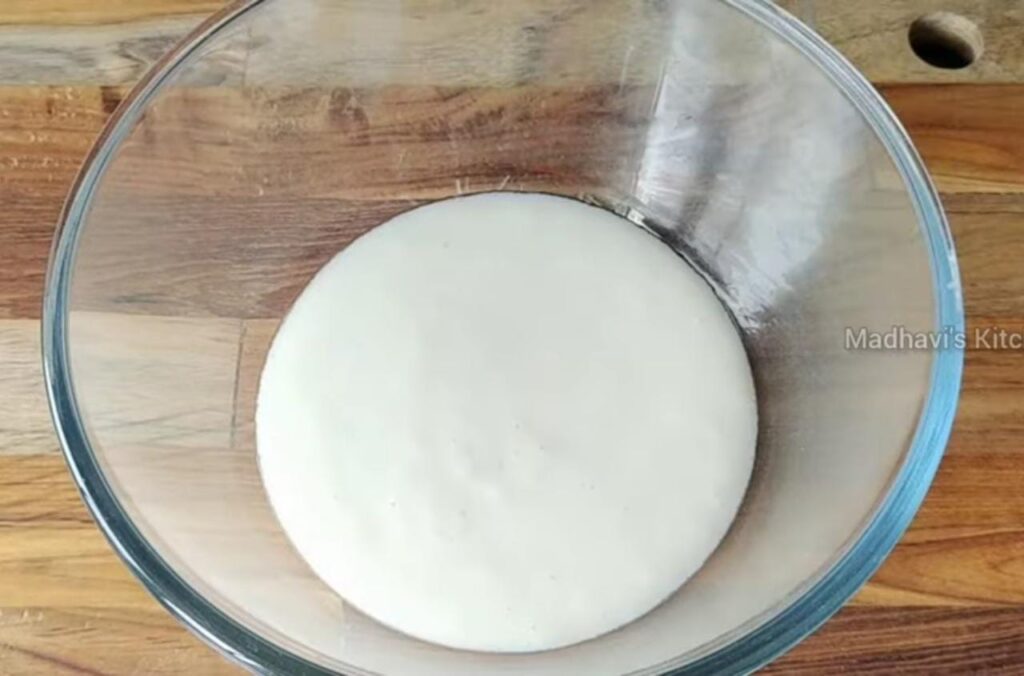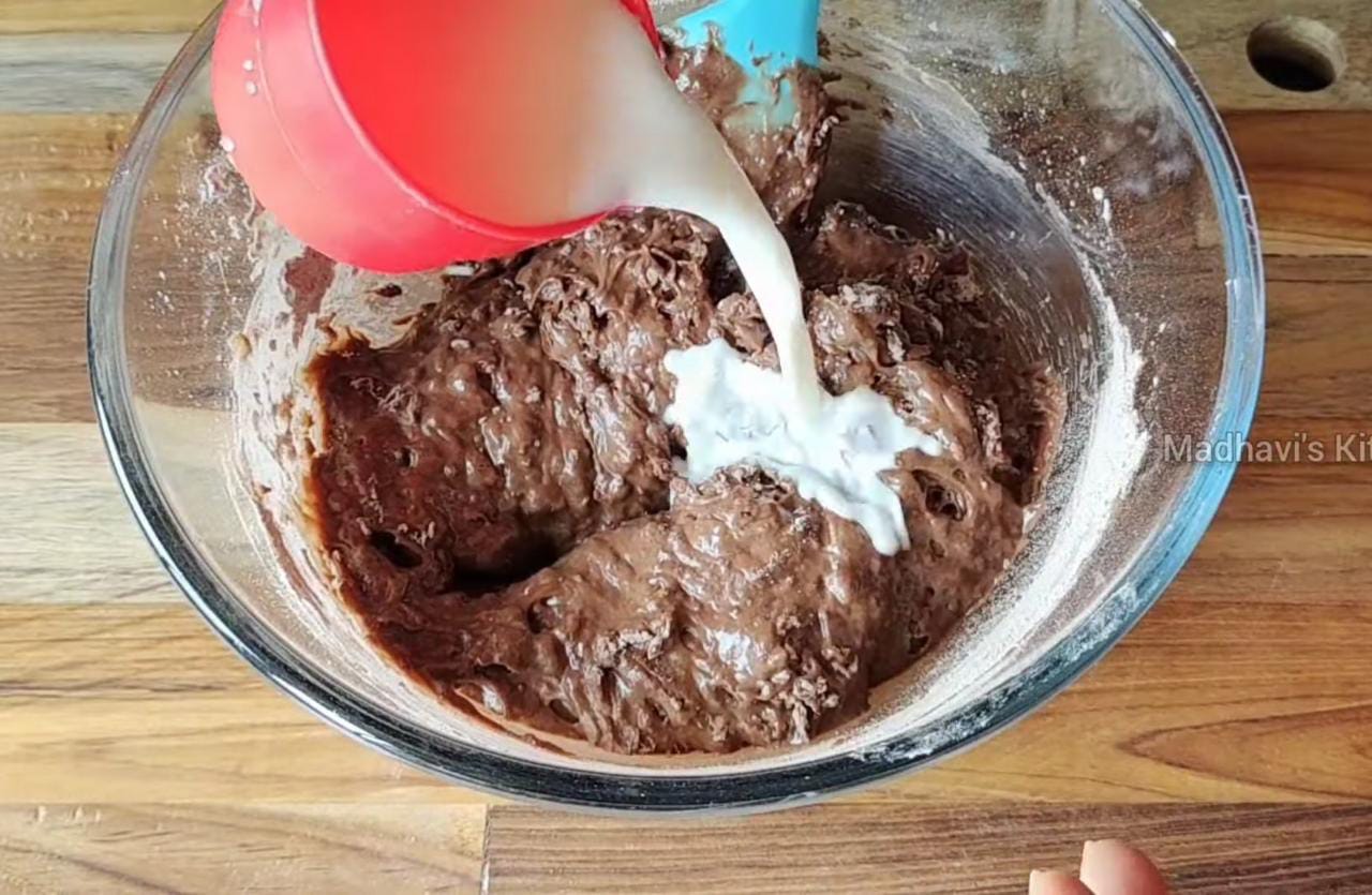 • Add the blended mixture in a bowl and add the dry ingredients gradually and mix well. Add milk if the batter is thick.