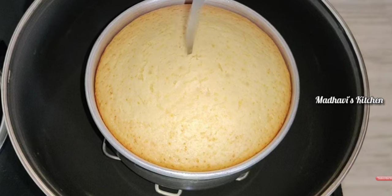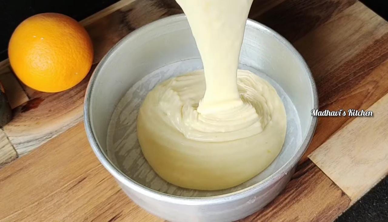 - Transfer the batter to the cake tin and bake on Preheated kadhai at low-medium flame for 35-40 minutes.