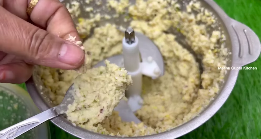 - Take out the blend and keep it in a big container. Whisk it well for about 6-7 minutes. Add some grated ginger and fennel seeds into this.