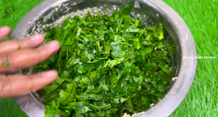 - To make it more nutritious, we will now add some freshly chopped spinach leaves and coriander leaves as well.