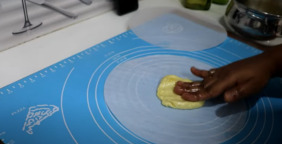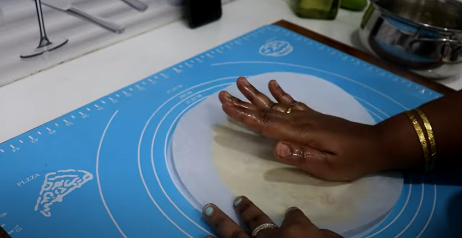 • Make the dough by mixing maida, turmeric, and less than half a cup of water in a bowl. Take an Ecobake cooking paper circle and take a small portion of dough and spread it a bit, then place the rava stuffing in it and cover it on all sides.
