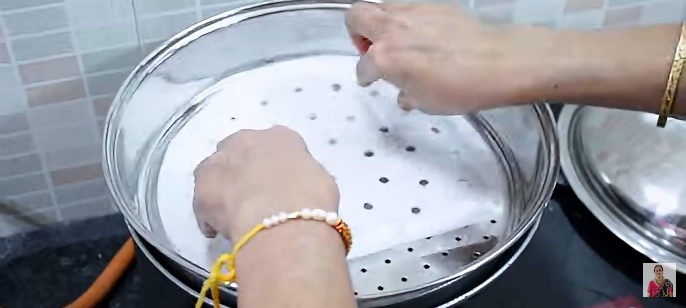 • Now take an idli streamer or a big kadai. Add some water and keep a stand and then keep a steamer pan. Oddy Ecobak non-stick liners can be used to coat our Steamer vessel. This will help the steam to seep into our modaks and also Oddy Ecobake is non-sticky and hence steaming the modaks becomes a hassle-free process.