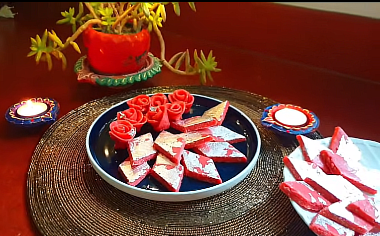 You can quickly prepare kaju katli with a delightfully delicious, nutty texture. Kaju katli has a melt-in-your-mouth feel and is incredibly creamy, delicious, and decadent. Rooh Afza, a concentrated squash with fruit within, is used in this recipe to add a subtle flavor. Using Oddy Ecobake, a non-sticky, food-safe product, the kaju katli can be simply shaped into roses and sliced into diamonds without sticking.