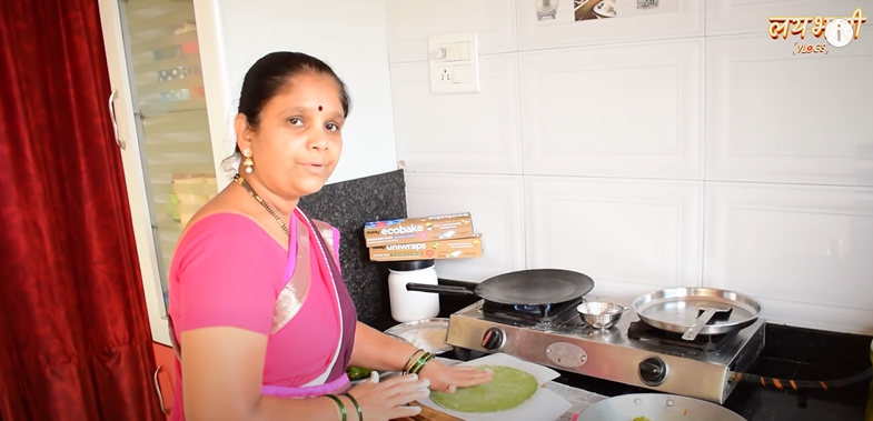 - Cook for a while and switch the flame and let the bhaji cool. Now take Oddy Ecobake and place it on a rolling pin. It will help in smooth chapati without sticking to the base.