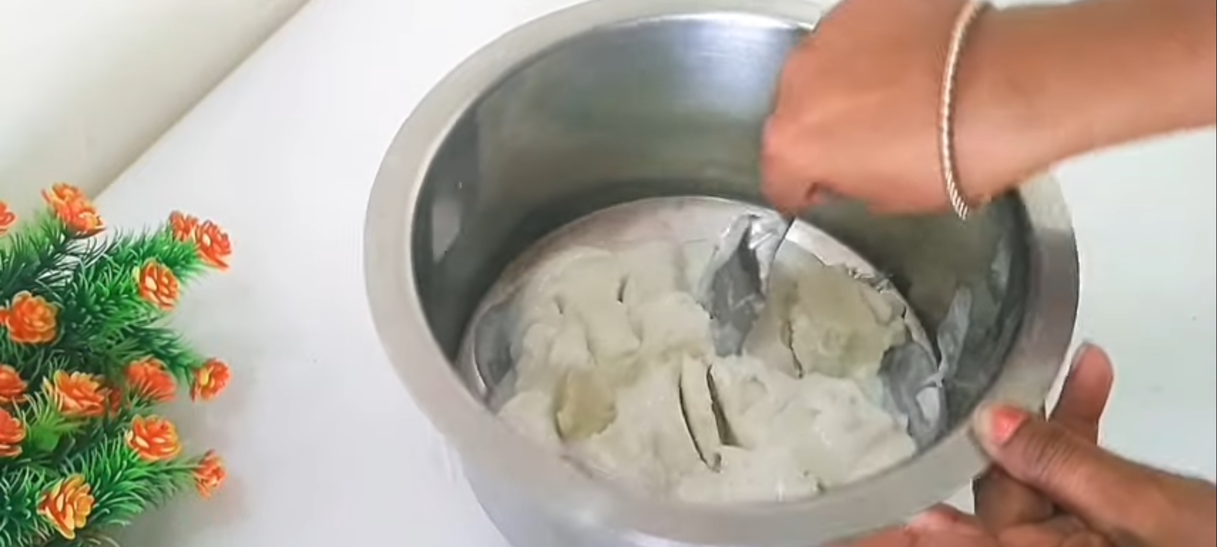 - Now place the vessel in gas stove and keep on stirring to avoid any lumps. Cook the mixture till it thickens a little and remove from heat and let the mixture cool down on room temperature. Transfer the mixture into a container and wrap it with Oddy uniwraps cooking paper. Now close the lid, covering the lid with oddy uniwraps prevents it from forming ice crystals in your ice cream.