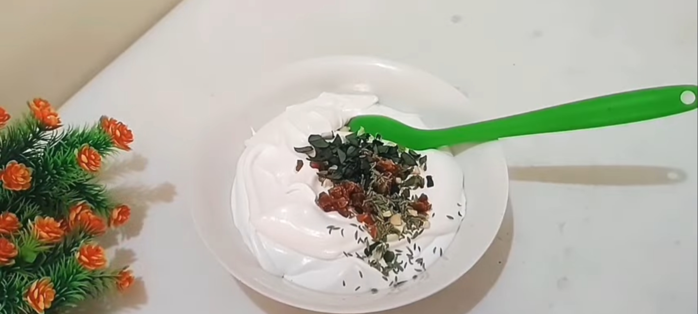 - Take the ice cream base and add dates, cashew, almonds, tutti fruity, fennel seeds, gulkhand, cardamom powder, beetle leaves, pan essence. Our pan flavored ice cream is ready.