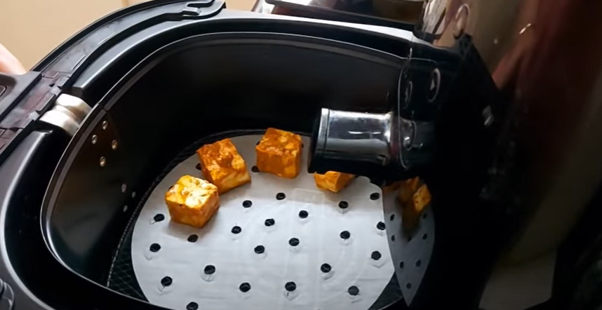 • Add paneer cubes to it and give them a good mix. Line your air fryer basket with Oddy Ecobake Perforated Liners.