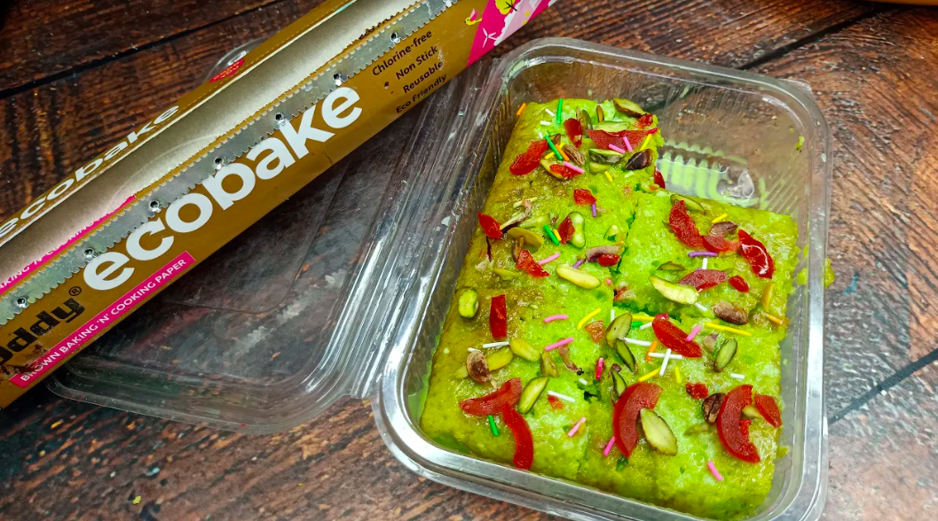 This simple pistachio cake recipe comes together in minutes. The pistachio flavour comes out nicely in this recipe. Ecobake helps in getting perfect cake without any greasing and no need of cleaning afterwards.