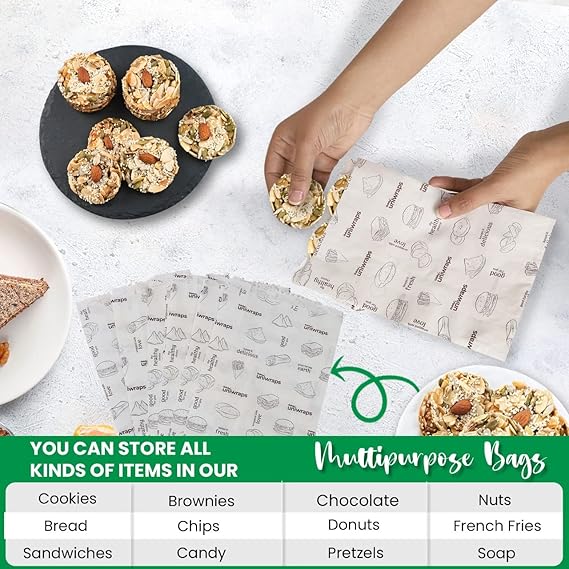 Uniwraps Multi-Purpose Paper Snack Bags with Sealing Stickers