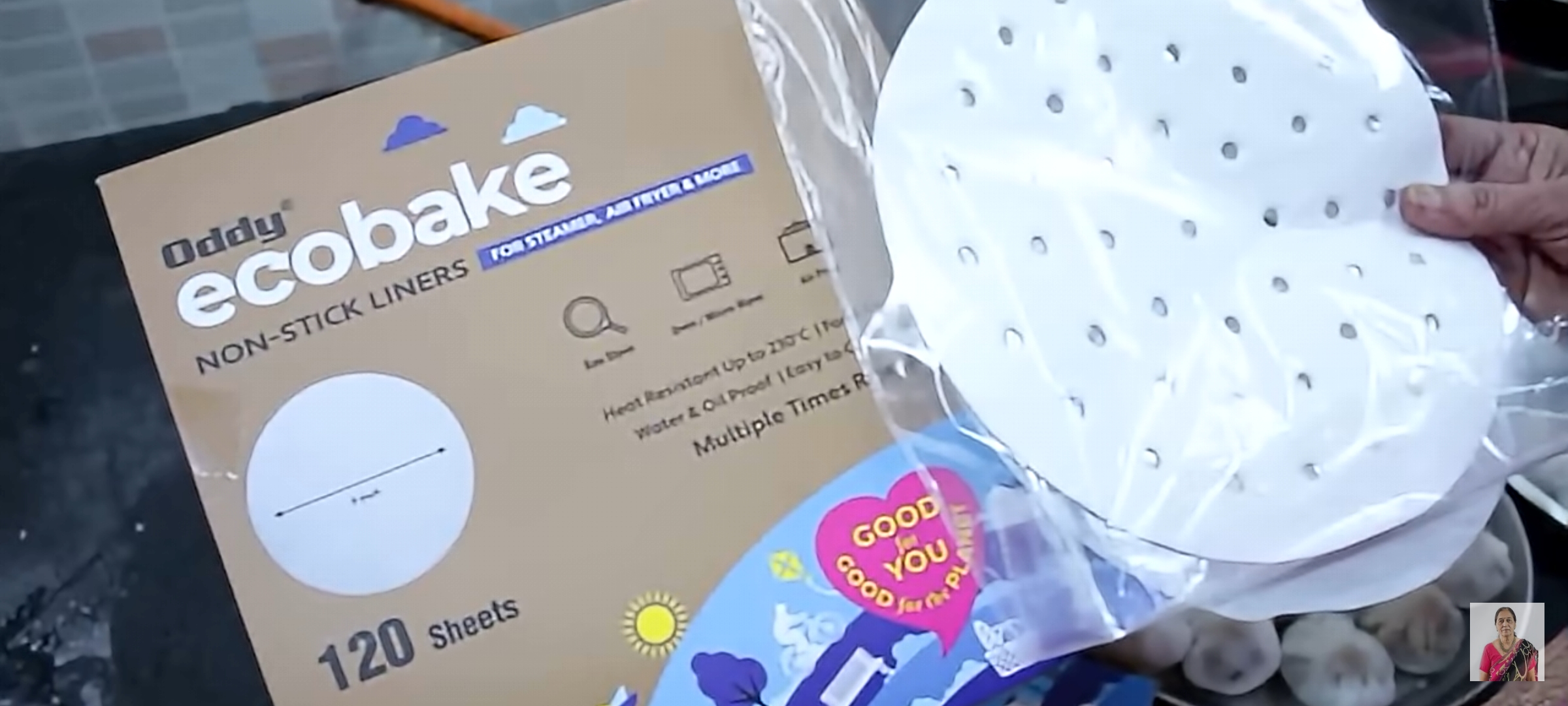 - Now take an idli streamer or a big kadai. Add some water and keep a stand and then keep a steamer pan. Oddy Ecobak non-stick liners can be used to coat our Steamer vessel. This will help the steam to seep into our modaks and also Oddy Ecobake is non-sticky and hence steaming the modaks becomes a hassle-free process.