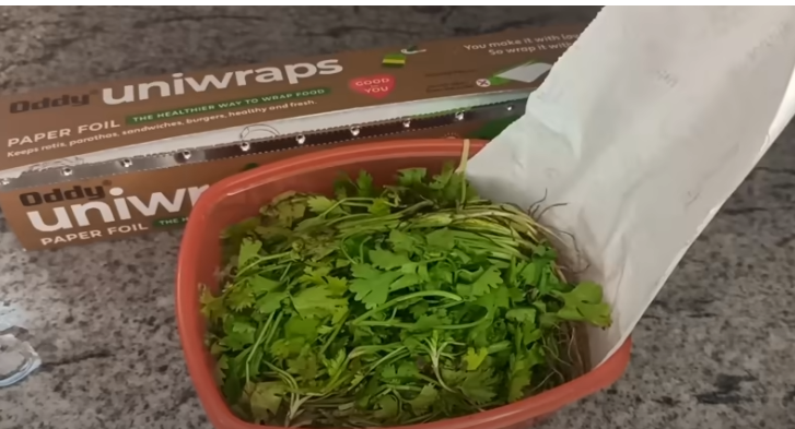 Store coriander leaves fresh by cleaning, sorting, and then wrapping and storing them in an airtight container in Oddy Uniwraps, which are very great for wrapping and come with a cutter to cut to the desired size. Oddy Uniwraps, which come in attractive prints, can be used to keep your cooked food or green leafy vegetables fresh and hygienic for a long time since they provide moisture balance. Also, it is reusable multiple times.