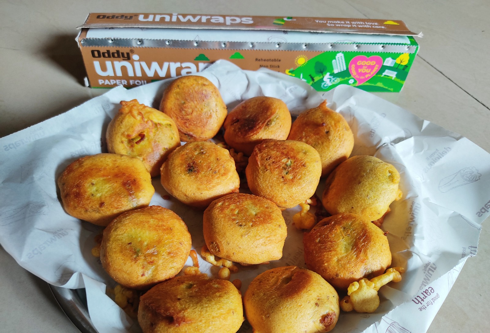Vada Pav is one of Mumbai’s famous street foods. It is made by clubbing deep-fried potato stuffing between a half-slit bun layered with spicy garlic powder. Today we’re going to learn how to make vada pav easily. Oddy Uniwraps helps you arrange the vadas on a plate without making the plate greasy.