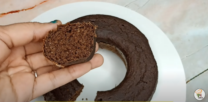 - Tap the batter so that it evenly settles down. Bake the cake for 20-30 mins at 180 degrees. After baking, garnish with sugar free chocolate ganache and serve.