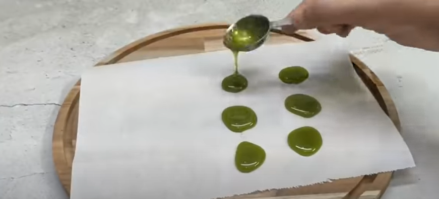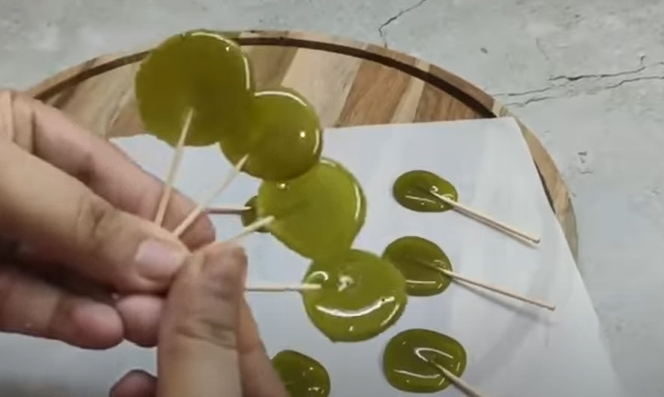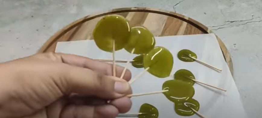 • Arrange scoops of the thickened mango sugar mixture in the Oddy Ecobake. Let them set and dry for a while. Collect the lollipops once they are completely dried and come off the Oddy Ecobake.