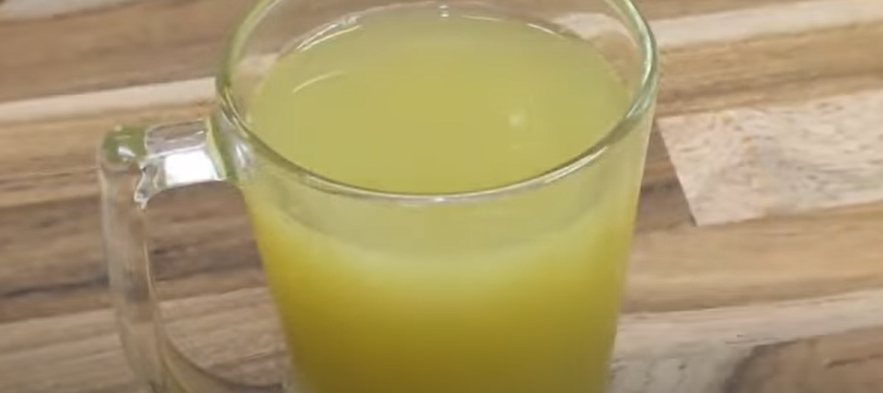 • Transfer the water into a cup and leave it for 15 minutes. Once the residue of mint leaves settles at the bottom, collect the upper layer of mango water in another cup.