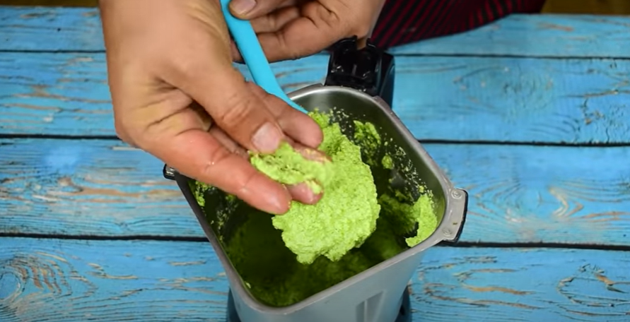 - Soak black chickpeas for 8 hours. If you are using green chickpeas, there is no need to soak. Grind chickpeas, chopped ginger, and chopped green chilies in a mixer grinder into a coarse paste. Transfer it into a bowl. Add turmeric powder, chili powder, asafoetida, and carom seeds and mix well.