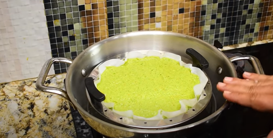 - You can add cumin, black pepper, and coriander. Add salt to taste. Add baking powder or baking soda to give puffiness and mix well. Steam it instantly after adding baking soda. Spread Ecobake sheets on the steamer tray or you can apply oil to the steamer tray. Transfer the mixture to the steamer tray and spread it evenly with a ladle.